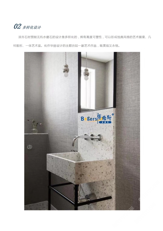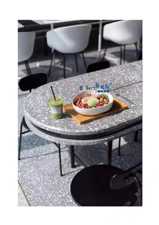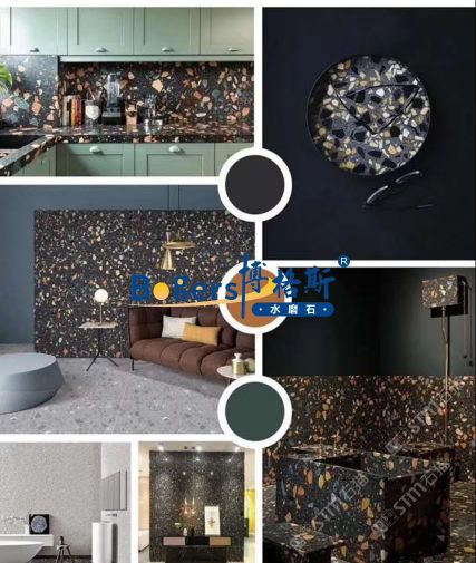 隨著工藝水平和材料品質(zhì)的巨大突破,新型預(yù)制無機(jī)水磨石采用環(huán)保型無機(jī)粘劑,不含樹脂膠水等,通過高頻高壓抽真空震動壓制而成,硬度更高更耐磨,施工更靈活方便。憑借其時髦大氣的設(shè)計呈現(xiàn)出一種慢慢的感