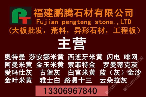 【鵬騰石業(yè)】專(zhuān)業(yè)加工出口超薄板材和超寬大板,并且在國(guó)內(nèi)外各大石材市場(chǎng)設(shè)有經(jīng)銷(xiāo)部和分公司,專(zhuān)業(yè)批發(fā)各種 大理石大板、花崗巖大板,并承接國(guó)內(nèi)外石材工程。