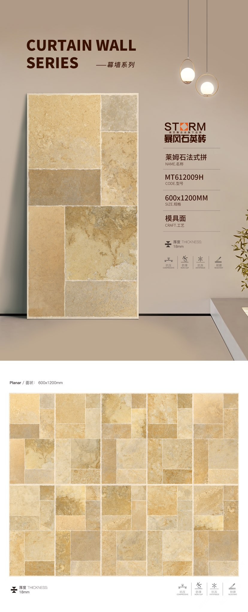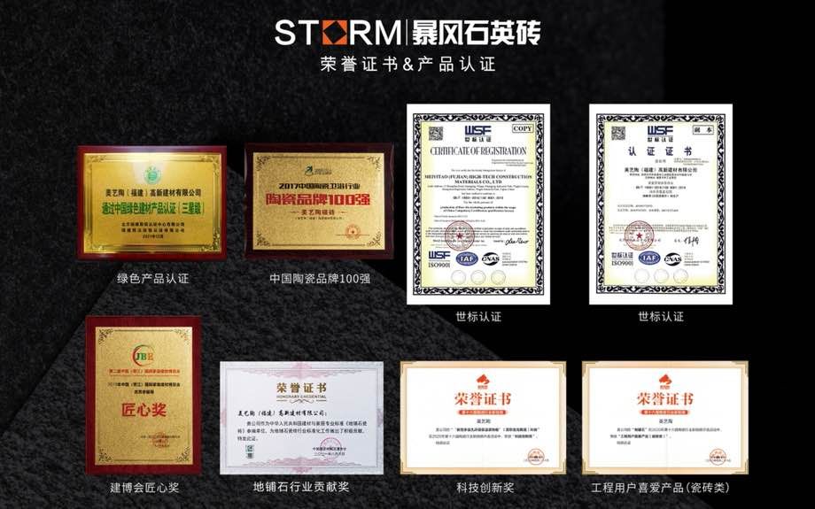 暴風(fēng)石英磚是美藝陶(福建)高新建材有限公司旗下系列產(chǎn)品,專注研發(fā)和生產(chǎn)運用于戶外的石英磚產(chǎn)品,為商業(yè)建筑和高端住宅提供優(yōu)質(zhì)建材產(chǎn)品與應(yīng)用解決方案 。暴風(fēng)石英磚精準定位為戶外用磚主營厚磚系列產(chǎn)品(1.2-3CM),并與2021榮獲“全國工程建設(shè)品牌”。\