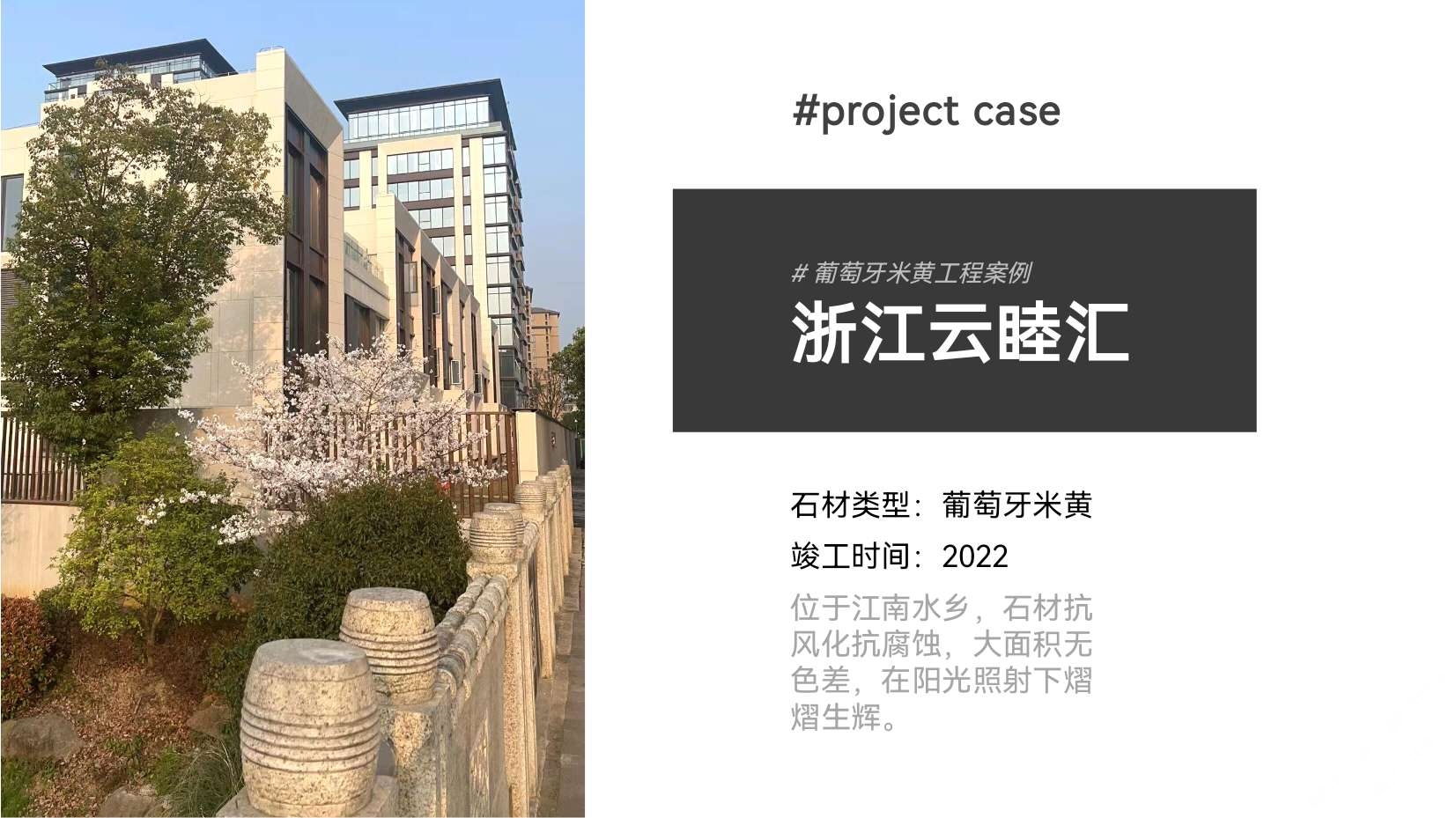 四川珍石美新材料科技有限公司成立于2010年,現(xiàn)坐落于四川省綿陽市北川羌族自治縣香泉工業(yè)區(qū)內(nèi),公司主營無機石葡萄牙米黃、白沙米黃、沉香米黃、鉑仕白、無機奢石、無機水磨石、無機羽石、泥克石等六大系列上百款的獨特產(chǎn)品,可供客戶任意選擇,滿足不同裝修風格、應(yīng)用場票的需求。 四川珍石美新材料科技有限公司具備的生產(chǎn)硬實力,坐擁四大生產(chǎn)基地占面積10萬平方米,引進20多條精密的加工生產(chǎn)線,原材料備貨充足,直接對接礦山。公司成立多年,不斷引進專業(yè)人才,積淀了成熟、高效的研發(fā)創(chuàng)新以及生產(chǎn)經(jīng)驗,年產(chǎn)值達200萬平方米。 珍石美無機石保留天然石材肌理,鋪貼平整自然,具有環(huán)保、耐磨、耐壓、防潮、被廣大設(shè)計師及消費者喜愛;廣泛用于學(xué)校、地鐵、酒店、名宿、高端商場,是天然石材的較佳替代產(chǎn)品。公司致力于為廣大客戶生產(chǎn)出高質(zhì)量、高性價比的石材產(chǎn)品,在經(jīng)營中以客戶需求為上,以產(chǎn)品質(zhì)量為先,踔厲音發(fā),砥礪前行。公司現(xiàn)竭誠面向全國尋求合作伙伴,歡迎與各位同行合作共贏,共創(chuàng)美好未來!