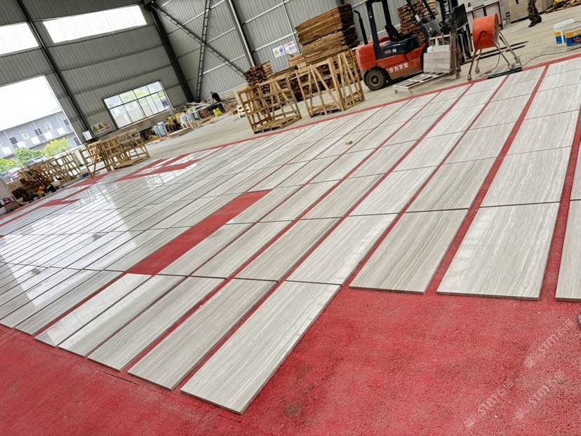 白木紋天然大理石墻面排版中