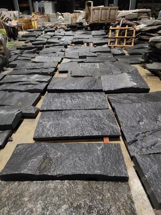 新老礦芝麻黑灰白自然面背景墻小方塊馬蹄石地鋪