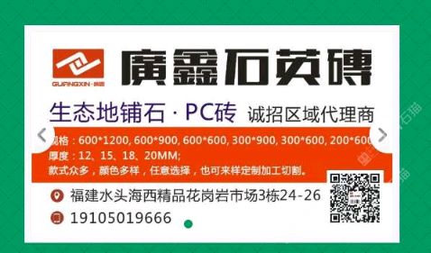 發(fā)布信息: 廣鑫石英磚/PC磚/仿石磚/生態(tài)地鋪石/生態(tài)石 抗壓強度高/抗凍性能好/防滑耐磨 廣鑫石英磚·歡迎鑒賞13400812000