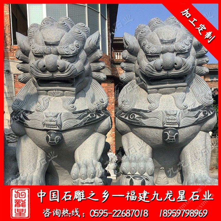 發(fā)布信息: 九龍星石業(yè)是石雕獅子廠家,從事石雕獅子加工制作20多年,石雕獅子款式多樣,價(jià)格合理。石雕獅子材質(zhì)可以為花崗巖、大理石、漢白玉、青石等等,望廣大新老客戶(hù)前來(lái)參觀考察和選購(gòu)。 石雕獅子顧名思義就是有石材雕刻而成的石雕獅子,石刻石獅子寓意很多,深受人們喜歡,民間流傳石雕獅子的寓意都很吉祥。 傳統(tǒng)石雕獅子作為中國(guó)傳統(tǒng)建筑中經(jīng)常使用的一種裝飾物,人們喜愛(ài)將它擺放在家門(mén)口,有的獨(dú)立的獅子把門(mén),有的放在門(mén)枕石上,有的與石鼓結(jié)合在一起。石雕獅千姿百態(tài),造型靈活。自唐代以來(lái)的大型石雕獅子基本上保持統(tǒng)一的坐姿,與漢代獅子石像常有的匍匐姿態(tài)相比,更接近于休憩而非狩獵,反映出唐代時(shí)期生活的富足、社會(huì)的安定,以及整個(gè)社會(huì)尤其是統(tǒng)治階級(jí)追求安逸、享樂(lè)的心態(tài)。大型石雕獅子有3米石獅子、2.8米石獅子也有2米石獅子。
