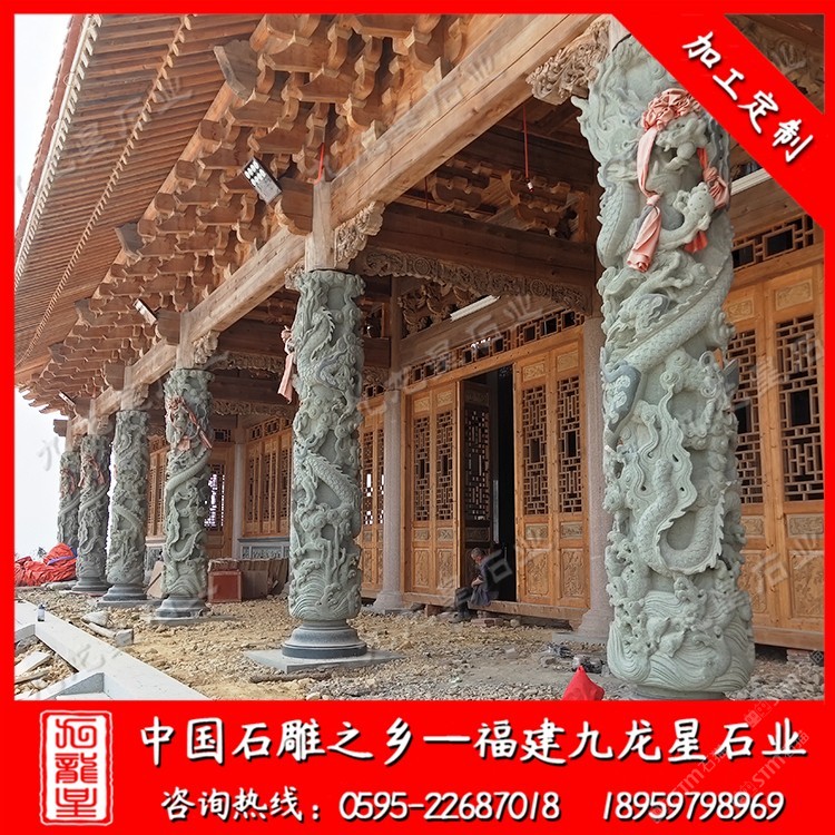 發(fā)布信息: 九龍星石業(yè)18959798969常年批發(fā)石柱子,石雕龍柱、石雕圓柱、石雕華表柱、羅馬柱等等,工期快、價格合理。 青石龍柱給人是一種古典美的感覺,采用青石加工后,呈現(xiàn)一種青藍色的色彩,整個龍柱給人一種古樸色,和祠堂的色調(diào)很好的搭配。對于祠堂這種古建筑來說,所需要的古典元素越來越少,人們對古典的美感的追求也越來越大,而青石龍柱在古建筑的應用是一直都存在的。