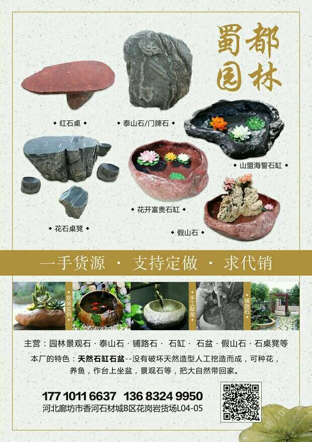 發(fā)布信息: 專營(yíng):泰山石、景觀石、天然石頭花盆水盆、鋪路石、假山石、石桌石凳等,一手貨源,支持定做,求代銷??!