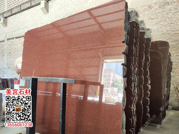 印度紅石材光面別墅精裝紅色花崗巖外墻干掛加州金麻