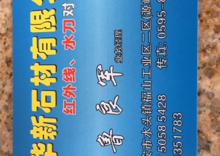 晉江市紫云耀邦石業(yè)有限公司主營產(chǎn)品:山水白,山水石1,銹石,巴西金,愛麗絲山水石(浪淘沙),黑白根,克什米爾金,G633,G603,G623,G623海滄白,白麻,灰麻,鉆石黃,喬丹黑,美國白金,永定紅G696,雪灰,皇家翠玉企業(yè)地址:福建泉州晉江市晉南快通